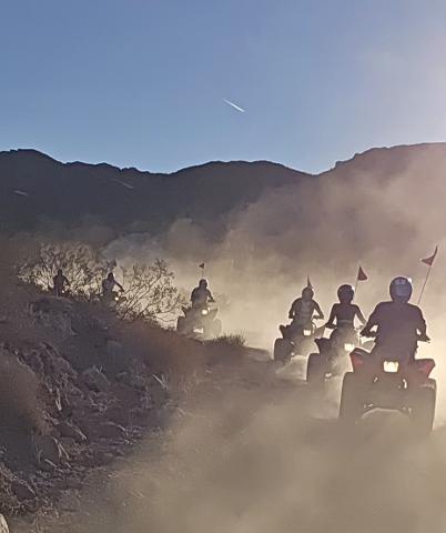 Get ready for the BEST 2-Hour Las Vegas ATV tour experience - an Awesome Adventure in a short amount of time, just outside of Las Vegas with stunning 360-degree views in the hidden valley of Eldorado Canyon. Ride a single-rider ATV (also referred to as Quad or 4-wheeler) or choose from multi-passenger RZR and Ranger options as you explore private trails through a scenic destination most visitors never get to see. Go off-the-Strip away from the noise and crowds for a true Nevada off road adventure.