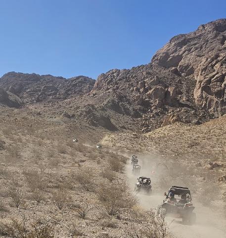 Next, drive a 2-seater, Side-By-Side 900 Polaris Razor (also referred to as Razor, Side X Side, UTV, Dune Buggy) for a memorable 2-hour scenic ride guided off-roading experience to the majestic Colorado River. Keep your eyes peeled for the local wildlife, such as Bighorn Sheep, Donkeys, Coyotes, and more. Once you arrive at the breathtaking Colorado River, it’s time for a well-deserved, delicious & tasty Capriotti’s lunch; choose an 8" sub or entrée salad with chips, cookies, and your choice of Coke, Diet Coke, or water. You can savor your meal while enjoying panoramic desert views. Your guide will get some cool photos, and now it is time to switch drivers and continue more of Nevada’s best trails. Beginner friendly yet packed with enough thrill to keep even seasoned riders grinning from start to finish where you can be a kid again and embrace F.E.A.R (Feeling Excited Adrenaline Rush) while Gettin DiRTY and Lovin it! Your guide will capture photos and videos along the way with stunning canyon backdrops, so everyone gets epic content to share and ensure you leave with incredible memories of Your Unforgettable adventures.
